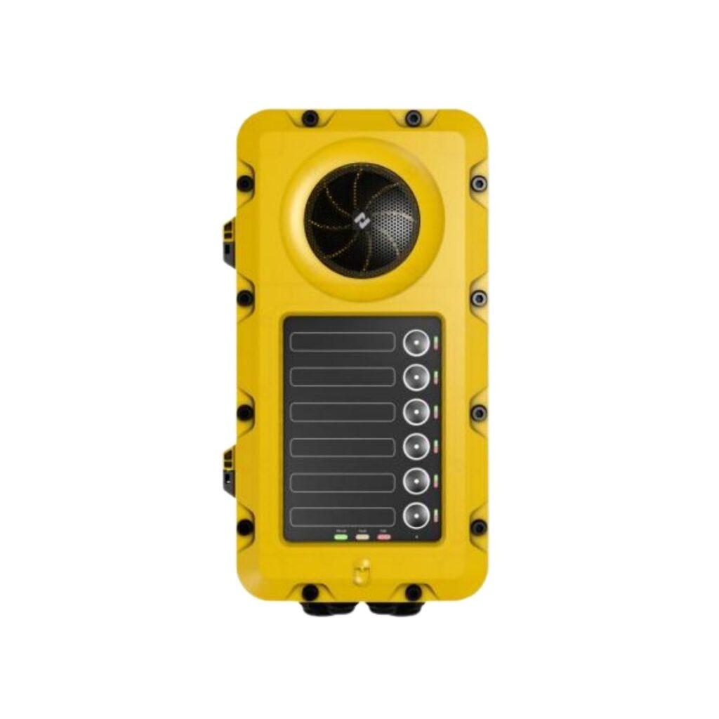 The TFIE-2 Industrial intercom station is a rugged device, designed for harsh environments and meets industrial and offshore requirements. The plastic housing is designed to withstand most chemical and environmental hazards found on- or offshore. The TFIE-2 features 6 programmable, labelled buttons and optional key covers for alarm panel duties. The intercom station is fully digital and offers crystal clear audio with high output through a 10 W internal amplifier and 78 mm speaker, offering up to 100dB SPL.