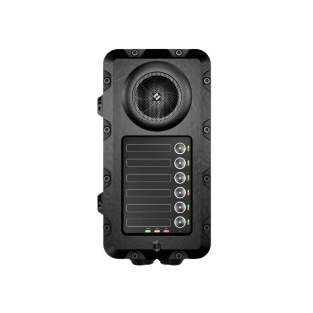 The intercom station is fully digital and offers crystal clear audio with high output through an internal amplifier and 78 mm speaker, delivering over 90 dB SPL. Active Noise Reduction and Acoustic Echo Cancelling allows for hands-free two-way communication with superior audio quality. A built in 25W amplifier is also included to power an external Loudspeaker.